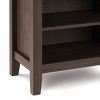Handcrafted with care using the finest quality solid woodHand-finished with a Warm Walnut Brown stain with a protective NC lacquer to accentuate and highlight the grain and the uniqueness of each piece of furnitureMultipurpose table can also be used in living, family rooms and condos as end or side tablesFeatures one (1) spacious drawer with metal drawer glides and open bottom storage area with one shelfTransitional design includes clean angle edged table top, square, slightly tapered legs and rectangular antique bronze knobsAssembly Required