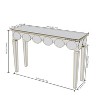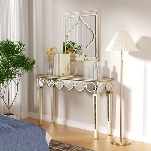 - Mirrored Entry Table - Adorned with a silver glass look in an antique gold rim design, the reflective mirrored surface artfully bounces different light and objects around the room, creates illusion of the space and make a room more brighter, open and spacious, bringing a warm and inviting atmosphere