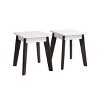 A: Hi Anna, Thanks for reaching out! The stools will also fit at the ends of the table. We hope this helps. Thank you! Wildkin Customer Experience
