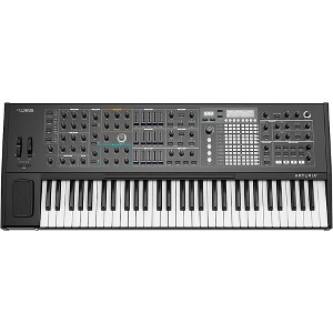 PolyBrute Noir from Arturia is a 61-note polyphonic analog keyboard, uniting unparalleled expressivity and sound design flexibility with six fearsome Brute voices, complete with a limited-edition stealthy black "Noir" finish. The result is an instrument that lets musicians perform fearlessly, compose with fluidity and explore sound in perpetual motion.Limited Noir EditionA true dark horse in any setup, PolyBrute Noir stylishly conceals its enormous creative potential within a slick black exterior, complete with colorful accents, luxurious dark wooden appointments and signature ionized parts that’ll make anyone look twice.Massive Analog PolyphonyHarness the raw power of analog with six powerful analog Brute voices, comprising seamless waveshaping VCOS, dual filters and a tactile array of modulation. Split, layer and stack PolyBrute’s voices for every flavor of analog polyphony—from beauty to beast.Morphing: Sounds Within SoundsExplore sound between the lines with two distinct sonic states within each preset, s to seamlessly morph and navigate between. With a single sweep of the multi-axis Morphée controller and Morph knob, discover endless sweet spots in every patch.Perform, ExpressFreely express musical style and bring creative ideas to life with PolyBrute’s hands-on controls, flexible interface and premium velocity-sensitive keybed with aftertouch. From the Morphée to the responsive ribbon controller, every aspect of PolyBrute ensures that sound is an extension of self. Sound to InfinityBuilt to satisfy inner sound explorer, this polysynth comes fully equipped for perpetual patch discovery and sound design. Quickly create modulation connections with the Matrix, color patch with three digital stereo FX engines and instantly animate any idea with musical sequencing and effortless arpeggiation.