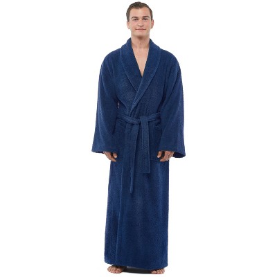 Our Men's Mid-Calf Length Turkish Cotton Hooded Bathrobe is the must-have robe for drying off at home after a shower or gym, pool, or at the beach. Manufactured from Oeko-Tex Certified 100% high-grade cotton with long fibers sourced from the Aegean region of Turkey, this absorbent robe ensures premium quality and comfort. Functional and durable, our hooded terry cotton robe boasts single-ply loops both inside and out, providing high absorbency while being gentle on your skin. Unique to Turkish cotton; it gets softer with each wash, making this robe an essential piece in your loungewear. It has a wide-cut hood for comfort with the terry loops absorbing moisture for quick drying. Patch pockets on both sides provide ample space to store your essentials, while the self-fabric belt with two loops allows for a customizable fit to suit your preference. This Hooded Terry Cloth Robe for Men is a perfect gift for any occasion. Dorm room essential to swimming and diving teams, you may use this absorbent robe for your guests, give as an anniversary, wedding or a gift bathrobe on a special occasion, use as a housecoat, lounge wear, after hot tub sauna robe or simply enjoy for your own relaxation. Available in a range of colors and sizes, this robe is perfect for everyone seeking a blend of style and functionality for everyday use. Wrap yourself in the luxury of Turkish cotton and enjoy the perfect balance of comfort and elegance. Machine wash with like colors, tumble dry with low heat and no iron.