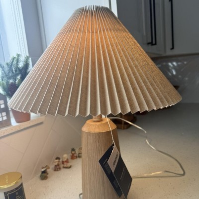 Inspired by mid-century modern Danish pottery lamps, this cool vintage style lamp features a heavy resin base and pleated, linen shade. Our minimalist lamp is perfect for a modern bedroom, living room, or entry. Includes an LED bulb for warm, bright light.