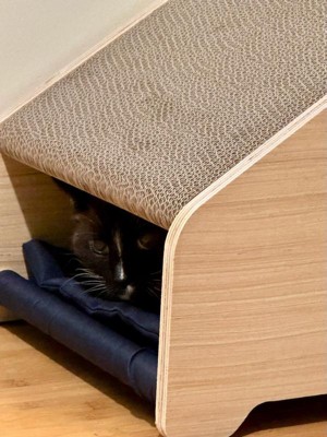 - DESIGNED WITH STYLE - Combining functionality with a modern and durable plywood aesthetic, the scratcher material is made from recycled and replaceable corrugated cardboard to help promote healthy claw behavior.