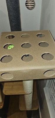 [This review was collected as part of a promotion.] I received this product for free in exchange for my honest review. There are so many places for the cats to have fun but my cat loves the box with balls in it. There are a lot of pieces and assembly takes a while. Cats love it and it seems sturdy, just set aside time to put this together