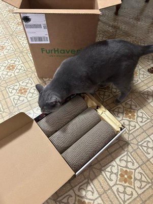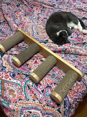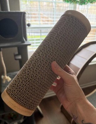 [This review was collected as part of a promotion.] First I want to acknowledge the quality of this scratching post. It has solid wood ends and a very precisely cut cardboard center for the ultimate of scratching posts. My XL beast loves to tear up the furniture, and now he prefers this scratching post. It’s perfect 🤩