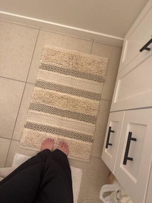 [This review was collected as part of a promotion.] Love this bath mat! It feels really luxurious and high end. It has varying textures, and the colors will match anything. Love the chevron and boho vibes!