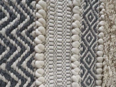 - Solid heavy shaggy textured woven detailing in vertical stripe layout