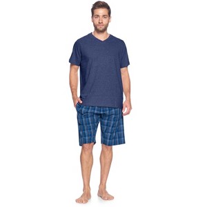 Ashford & Brooks Men's Woven Short Sleeve Jersey Top & Pajama Shorts Set - 1 of 4