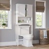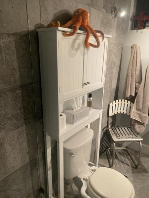 The RiverRidge Ashland Space Saver Over Toilet Shelf Cabinet is an ideal bathroom cabinet over toilet for maximizing limited space. Its compact design fits snugly over most standard toilets, providing ample bathroom cabinets and over the toilet cabinet storage without sacrificing floor space. With one fixed shelf, one adjustable shelf behind double doors, and an open shelf, our toilet storage cabinet offers versatile organization options. Elevate your bathroom aesthetic with the RiverRidge Ashland Space Saver. This towel cabinet for bathroom features inset beadboard styling and mirrored door knobs, adding a touch of elegance to your bathroom wall storage. The adjustable shelves allow you to customize the above toilet storage to suit your needs, while the anti-tip anchoring hardware ensures stability and safety. Crafted from durable MDF with a painted finish, our over-the-toilet cabinet is both functional and attractive.
