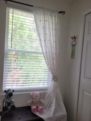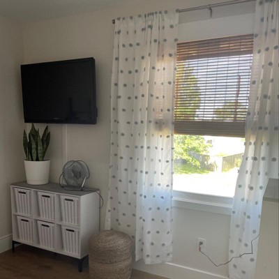 - Light-filtering curtain panel adds a touch of playful texture to your space