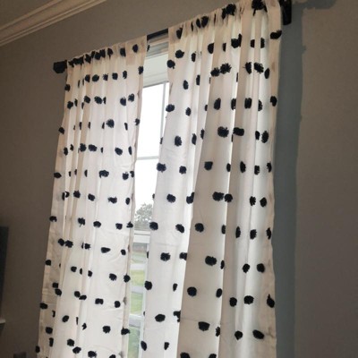 [This review was collected as part of a promotion.] very cute looking spotted curtain. Give a great extra pop of decoration. Also give a very fresh look to a kids room. Very light weight curtain. Also makes a great back drop for a farm/dog theme party for the little ones. Spots on curtain are soft and fluffy so it makes a fun cute look to any room