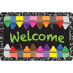 Ashley Productions® The Original Fun Mat™, Welcome Mat, 15.5" x 23.5", Welcome Crayons Composition | Transform your classroom, home, or office with our vibrant decorative floor mats! Designed to inspire and engage, these eye-catching mats are perfect for creating a welcoming and dynamic learning environment. Featuring a soft, absorbent surface that's easy to clean and a heavy-duty, slip-resistant rubber backing for added safety, they're built to handle the demands of high-traffic areas. With a variety of educational, nature-inspired, and interactive designs to choose from, our mats are ideal for cozy reading corners, designated learning zones, or simply adding personality to your space. Brighten your room with a burst of color and creativity while providing a comfortable, inviting area for students or colleagues to gather. Welcome mat measures 15.5" x 23.5".