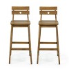 Outdoor Acacia Wood Stool (Set of 2) Whether you are hosting a party indoor or outdoor, your seating is of great importance. Our set of barstools is the perfect addition, effortlessly transforming your space with both comfort and style. Composed of rich acacia wood and subtly splayed H-frame legs, our rustic stools will complement any bar or dining set up, bringing an understated flair to even the most unassuming home. These are finished with classic slate paneling that strike a perfect balance of rustic charm and modern sophistication for all to admire. Includes 2 bar stools Made of acacia wood Teak finish Handcrafted details Built-in backs Rustic style Outdoor or indoor use Slat design Weight capacity is 400 pounds Assembly required Dimensions: Overall: 20.25 inches deep x 17 inches wide x 40.5 inches high Seat: 16 inches deep x 15 inches wide x 29.75 inches high Country of Origin: Vietnam