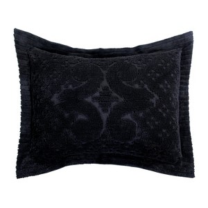 Standard Size is 21" x 27" + 2" flange on each side, Euro Size is 26" x 26", & King Size is 20" x 36" + 2" flange on each side. Matching bedspreads are available in 13 colors—Blue, Black, Burgundy, Chocolate, Gray, Ivory, Navy, Pink, Plum, Sage, Teal, White, and Yellow—3 sizes and are sold separately.