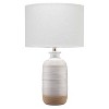 Bring raw beauty to your surroundings with this textured ceramic table lamp. Handmade of ceramic, the intricate line patterns are highlighted in natural and off-white glaze for visual interest. Enjoy a relaxing vibe with its linen shade that provides a refined glow. While no two will look exactly the same, the slight variations make this lamp a statement piece in any tabletop.