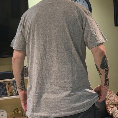 [This review was collected as part of a promotion.] My fiance is 5', 7" tall and weighs approximately 180 pounds. He usually wears an xl, which is what he's wearing here. This fit him perfectly. This was his favorite shirt, couldn't stop laughing when he lifted it. The dirty itself fit him well, wasn't too in the shoulder area, which he prefers. The material is soft.