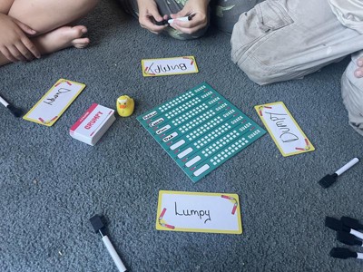 I got the Asmodee Rhymes with Duck Card Game for my classroom and I can not wait to take it in to play with them! I had my family play with me at home to make sure I knew how to play the game so I could teach my students. We had SO much fun! We were laughing until the very end of the game. Scoring was a bit complicated, so I’ll probably play with simpler scoring rules. The game feels like it will hold up decently well. The answer boards and the score card are made of thick cardboard with a coating so it’s able to be written on with a whiteboard marker. The markers it comes with a nice feature as they have an eraser already attached to them… just make sure you click the lids on. They can be a bit hard. Overall, great game and I can’t wait to play it in small groups with my students!