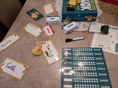 I hate this game. Firstly, the name isn’t appropriate for family game night. My 11 year old was immediately tempted, not cool. The game itself is a mess and none of us could figure it out. We tried to just play it as a rhyming game, but that was boring. Two stars because my 3 year old loves the bath duck.