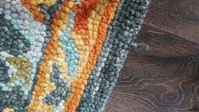 Overall, I am extremely pleased with this rug. It’s beautiful in my home and has a nice thickness. The color name is a little misleading. I think it should be like dark grey rug with olive/rust accent colors. Loses a star because there are missing tassels on one side of the rug (see pictures). One side is perfect (pic with the cat), the other has weird gaps and some pointing in weird directions. This doesn’t bother too much because of the layout of my living room. I agree with others on the smell. I couldn’t open it outside because it’s winter so I managed to open it up in my front stairwell before bringing it into my apartment. It definitely helped get some of the smell out. Now my real beef - it comes with a lot of loose fibers. I’ve gone over it 3 times with my Dyson on max suction. It filled the canister every time. It seems like dust, loose fibers, and maybe glue? So definitely vacuum a lot if you get a rug from this company. I’m pleased. I’d buy another rug.