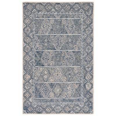 Elevate your living space with the enchanting charm of our 3' x 5' hand-tufted wool area rug. Artisan-crafted in India, this rug embodies the soul of Bohemian elegance, combined with the comfort of a plush 3/8" pile height. The harmonious blue and beige palette complements the intricate patterns, inspired by traditional designs, adding a touch of time-honored sophistication to any room. Perfect for smaller spaces, this small rectangle-shaped treasure will infuse your home with its cosmopolitan yet homey vibe, making it an irresistible addition to your decor collection.