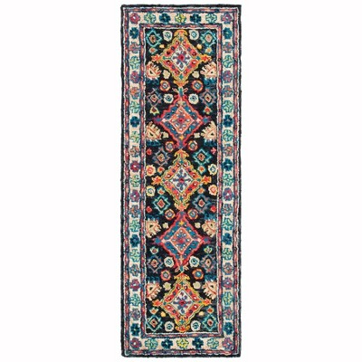 Introducing the exquisite hand tufted wool runner rug crafted with precision in India. This 2-foot 3-inch by 9-foot runner brings a touch of bohemian elegance to any hallway or narrow space in your home. With a comfortable 3/8 inch pile height, this runner is not just a treat for the eyes but also for your feet.