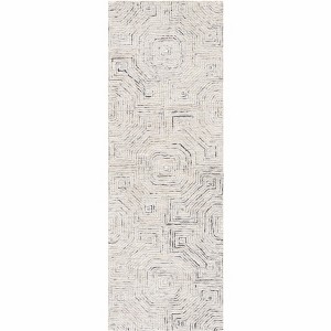 Experience the perfect blend of craftsmanship and style with our hand-tufted wool runner rug, sized at a versatile 2'-3" X 7'. Crafted in India, this runner boasts a comfortable pile height of 3/8" and is an exquisite addition to any hallway or narrow space. Its bohemian flair is underscored by a harmonious mix of grey and beige tones that create a serene backdrop for the dynamic, geometric pattern. The bold yet intricate design provides a contemporary twist on traditional aesthetics, making it an ideal choice for those seeking to add a touch of artistic sophistication to their decor. This plush wool runner promises both long-lasting durability and an inviting underfoot feel, seamlessly uniting function and fashion.