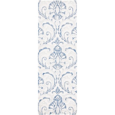 Crafted in India from a premium blend of 80% Wool and 20% Cotton, it offers warmth, comfort, and longevity, making it an investment for your home. An intricate dance of ivory and blue hues creates a timeless yet fresh canvas that complements a broad range of decors.
