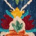 This rug showcases a captivating floral pattern set against a deep navy background, accented with vibrant red tones and a harmonious blend of complementary colors that bring the intricate design to life. The carefully selected wool material ensures durability and a soft underfoot experience, making it a luxurious addition to your home decor.