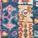 The rug features a captivating patchwork of geometric and floral motifs, harmoniously balanced in a vibrant palette of blues and reds, accentuated by hints of orange, purple, and teal. This dazzling design reflects a free-spirited Bohemian style, perfect for adding a touch of eclectic whimsy to any space.