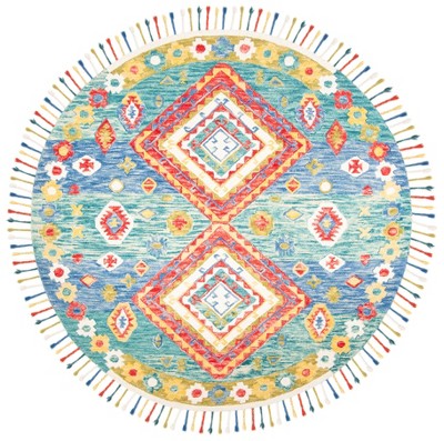 Whether anchoring your living room, enhancing your bedroom, or making a statement in your entryway, this bohemian-style rug is designed to blend with various interior schemes while standing out with its unique pattern and vibrancy. Embrace the eclectic spirit and rich cultural heritage with this round area rug that promises to transform your space into a cozy and stylish haven.