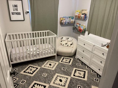 Colors are different then what I thought they would be. I thought it would be more gray, but it’s actually black and white and no gray at all. Love it either way, it goes with our modern boho decor. I purchased the 3x5 so it would be oversized and plenty big enough for kiddos shoes coming in from back yard.