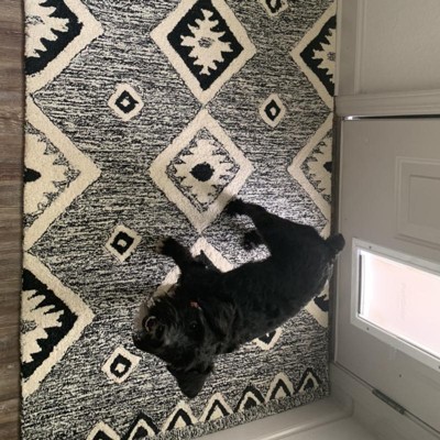 Colors are different then what I thought they would be. I thought it would be more gray, but it’s actually black and white and no gray at all. Love it either way, it goes with our modern boho decor. I purchased the 3x5 so it would be oversized and plenty big enough for kiddos shoes coming in from back yard.