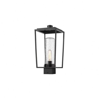 A warm and classic oil rubbed bronze finish highlights the beautiful look of this outdoor post mount fixture. A dual frame construction offers the durability of aluminium and a fitting venue to host a tasteful seedy glass shade. Outdoor Living/Deck/Patio Shade Included: Yes Dimmable: Yes Material: Aluminum, Finish Color: Black, Width: 11", Height: 15", Length: 11", Lamping Type: Incandescent, Number Of Bulbs: 1, Wattage: 100 Watts, Dimmable: Yes, Moisture Rating: Wet Rated
