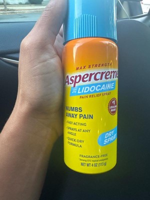 - Contains one (1) 4-oz. spray bottle of Aspercreme Lidocaine Pain Relief Dry Spray, designed to numb away nerve pain