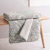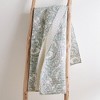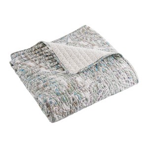 The Assisi Reversible Throw by Levtex Home is inspired by antique European inspired wallcoverings and tapestries. Offered in classic mint, blue, taupe and cream, this design will immediately transform any room in your home. This throw features a rich collection of beautiful regal floral on the front, reversing to a small clover outlines in taupe on cream on the back. The Throw (50x60in.) has a cotton front and cotton back, filled with a cotton-rich filler, and is machine washable. Enjoy this for years to come!