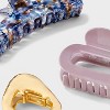 Assorted Marble and Cut Out Hair Claw Clip Set 3pc - A New Day™ Multicolor