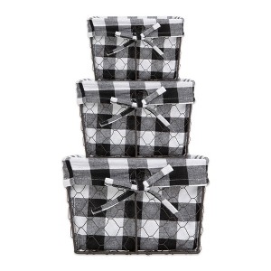 - ASSORTED SIZES: Set of 3 includes gray wire baskets with black & white check fabric removable liners: 1 Large (126"L x 906" W x 8"H), 1 Medium (11"L x 788"W x 7"H), 1 Small (9"L x 7"W x 6"H)