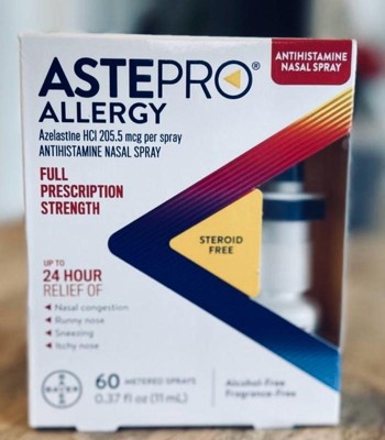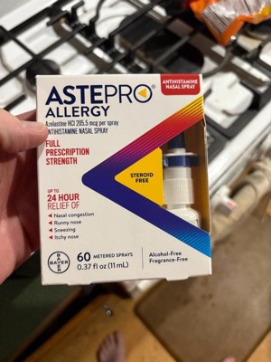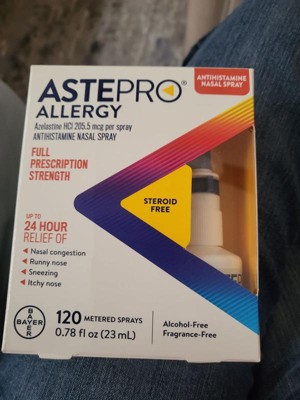 [This review was collected as part of a promotion.] I’m doing this review for influencer and brands. ASTEPRO allergy, full prescription strength, antihistamine, nasal spray 24 hour relief, nasal congestion, runny nose, sneezing, itchy, nose, steroid free, 120 metered sprays alcohol free fragrance free been using it for a few days. It actually works pretty good. It doesn’t quite last the whole 24 hours like it says, but it does last a good 1213 hours. For me, but I love that it’s steroid free and it’s better for me than some of the other brands that I’ve tried so if you’re looking for a better product steroid free this is the one give it a try you’ll like it.