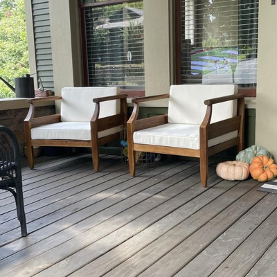 Aston 2pk Acacia Wood Mid-Century Modern Club Chairs: Weather-Resistant Patio Seating - Christopher Knight Home