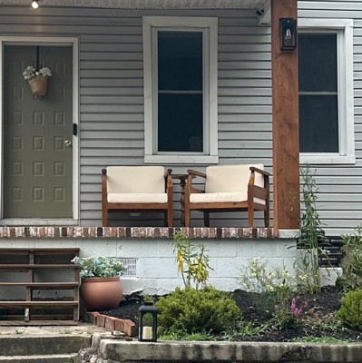 My husband and I both LOVE these chairs. We got them for our front porch and we couldn’t be happier. They are a great size and great quality. For the price you can’t beat it. Highly recommend!