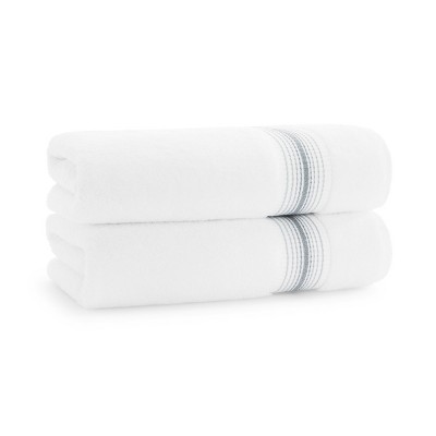 Aston & Arden White Luxury Cotton Towels for Bathroom (600 GSM, 18x32 in., 4-Pack), White with Striped Ombre Border, Slate
