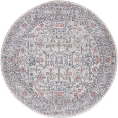Measuring 5'-3" in diameter, with a comfortable pile height of 1/2", this round rug is designed to offer a generous underfoot experience that complements a wide variety of decor schemes. The refined color palette of light grey and grey shades seamlessly intertwines with the rug's visually captivating pattern - a modern m, lange of abstract shapes and organic dispersal that exudes a sense of calm and contemporary flair.