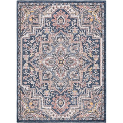 Constructed using a state-of-the-art power-loomed technique, this rug is woven from high-quality polypropylene, ensuring a product that is not only soft to the touch but also exceptionally resilient and easy to maintain. The intricate patterns adorning the rug echo the grandeur of historical design, featuring an opulent central medallion surrounded by floral motifs and nuanced accents in a harmonious tapestry of ivory, blue, and rust tones.