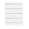 Add a classic, simple, storage solution to your bedroom with the Astrid 4-Drawer Chest with Crystal Knobs. It’s contemporary design and clean lines will complement any decor. Profiled drawer fronts and acrylic crystal knobs add a beautifying touch. Use on its own or pair it with other matching pieces from the Astrid Collection.