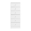 This Astrid 6-Drawer Tall Chest with Crystal Knobs is your small space bedroom solution. It’s contemporary design and clean lines will complement any decor. Profiled drawer fronts and acrylic crystal knobs add a beautifying touch. Use on its own or pair it with other matching pieces from the Astrid Collection.