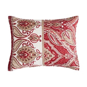 The Astrid Quilted Standard Sham by Villa Lugano for Levtex Home is inspired by antique wall coverings and tapestries. Offered in classic red and taupe, this design will immediately transform your bedroom. These shams feature a rich collection of medallions and paisleys offset with a distinctive bottom border on the front, reversing to a small red and taupe medallion on white on the back. Enjoy this for years to come!