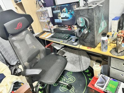 Ergonomic support for long office hours but, defect in the product design the bar vertical in the seat of the chair cut through the fabric right now the two year warranty is still in effect, but still having problem updating this even after producing the uploaded receipt, will call out tomorrow other than that asus makes great products