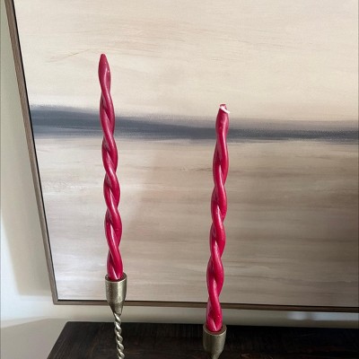 [This review was collected as part of a promotion.] This 4 pack of tapered candles is so unique with the twist design. They say it’s red but to me it looks a tad bit more burgundy in color. These are fairly tall so the place I had to put them in looked a bit awkward so I will need to find a holder that fits them a bit better. Otherwise these are a great quality product.