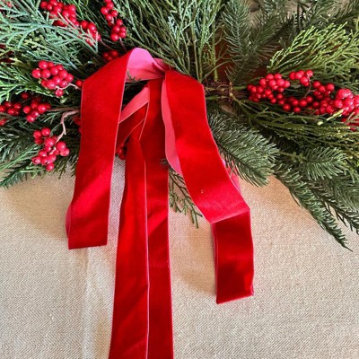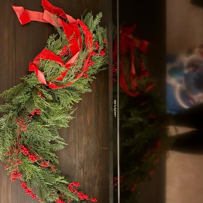 [This review was collected as part of a promotion.] I love the elegant asymmetrical berry pine Christmas garland. The mix of pine greenery, red berries, and the long velvet bow makes it feel festive and high end without being over the top. It’s perfect for adding a holiday touch to your front door, staircase, or fireplace mantle. This garland is a bit smaller, so it would work best as an accent piece rather than a full garland. The quality and design are beautiful and give an instant cozy Christmas feel.