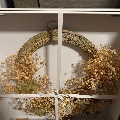 This wreath is handcrafted and preserved and will look beautiful on any front door. Neutral colors will fit with any home and the wreath comes in a nice box for gift giving or you can use it to store the wreath when not using it.